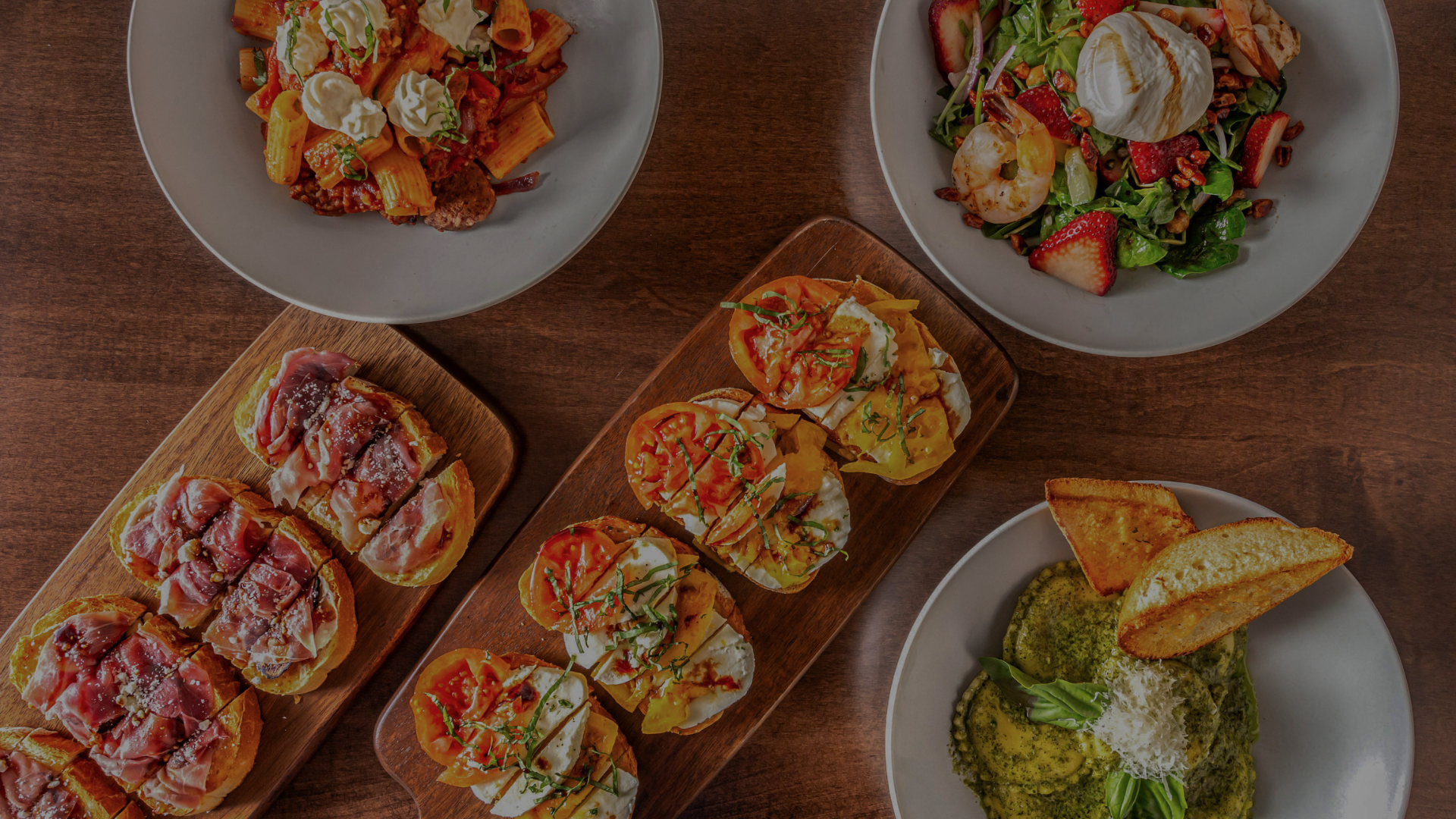 A delicious assortment of prosciutto, soppressata, hot coppa, huckleberry cheddar, Manchego, and smoked gouda, paired with fresh strawberries, blueberries, pomegranate seeds, and a medley of olives. Accompanied by stone ground mustard, honeycomb, and Calabrian hummus, and served with toasted crostini.